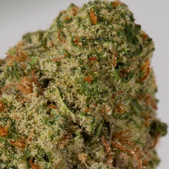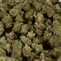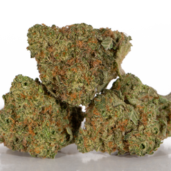Blue Dream is a slightly Sativa Dominant Hybrid (60% Sativa/40% Indica) strain that is a potent cross between the hugely popular Blueberry X Haze strains. This infamous bud boasts a moderately high THC level that ranges from 24% on average and a myriad of both Indica and Sativa effects. Users describe the Blue Dream high as having an immediate onset of an uplifting cerebral head high that leaves you completely motivated and focused with waves of creative energy that hit quickly and hard. This is accompanied by a mellow relaxing body high that leaves you warmed, numb, and completely pain-free. Due to these potent combination effects, Blue Dream is said to be an ideal strain for treating patients suffering from conditions such as chronic stress, chronic pain due to injury or illness, mild to moderate cases of depression, and sleep disorders, including insomnia. Blue Dream has a delicious aroma of sweet blueberry pie and a taste of sugary sweet blueberries that stays on your tongue long after smoking. This bud has large dense yet fluffy popcorn-shaped bright neon green nugs with amber and blue hairs and rich blue undertones.