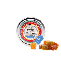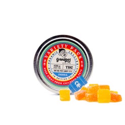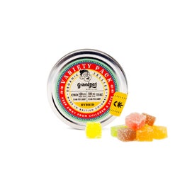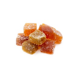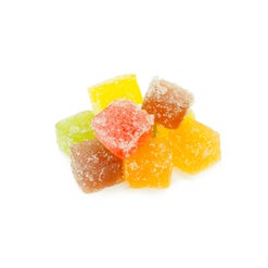 Ingredients: sugars (glucose syrup*, beet sugar*, fruit juice concentrates of apple*, elderberry*, black currant*, and raspberry), gelatin, citric acid, coconut oil, cannabis extract, natural flavoring (lemon, strawberry, black currant, apple, passion fruit), turmeric extract*, spirulina extract*, carnauba wax.