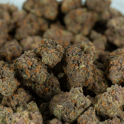 Hash Burger is a slightly indica dominant hybrid strain (60% indica/40% sativa) created through crossing the iconic Han Solo Hash Plant X Double Burger strains. Named for its celebrity parentage and bold flavor, Hash Burger is a great balanced option for any indica lover. This bud packs a sweet yet super spicy lemony hash taste accented by a touch of woody pine and fresh flowers. The aroma is just as delicious, although it does take the spicy level up a notch or five. The Hash Burger high will come burning through a few seconds after your final exhale, working through your brain first before taking on the rest of your body. You’ll find your spirits lifted as your mind is filled with a happy euphoria that instantly edges out any bad moods or negative thoughts. A physical relaxation comes next, seeping into your body and leaving you feeling pretty couch-locked and super sleepy at times. With these effects and its super high 27% average THC level, Hash Burger is often said to be perfect for treating a variety of conditions including insomnia, depression or mood swings, chronic stress or PTSD and appetite loss. This bud has dense spade-shaped forest green nugs with bright amber undertones, thin hairs and chunky matching trichomes.