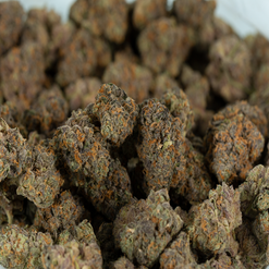 Hash Burger is a slightly indica dominant hybrid strain (60% indica/40% sativa) created through crossing the iconic Han Solo Hash Plant X Double Burger strains. Named for its celebrity parentage and bold flavor, Hash Burger is a great balanced option for any indica lover. This bud packs a sweet yet super spicy lemony hash taste accented by a touch of woody pine and fresh flowers. The aroma is just as delicious, although it does take the spicy level up a notch or five. The Hash Burger high will come burning through a few seconds after your final exhale, working through your brain first before taking on the rest of your body. You’ll find your spirits lifted as your mind is filled with a happy euphoria that instantly edges out any bad moods or negative thoughts. A physical relaxation comes next, seeping into your body and leaving you feeling pretty couch-locked and super sleepy at times. With these effects and its super high 27% average THC level, Hash Burger is often said to be perfect for treating a variety of conditions including insomnia, depression or mood swings, chronic stress or PTSD and appetite loss. This bud has dense spade-shaped forest green nugs with bright amber undertones, thin hairs and chunky matching trichomes.